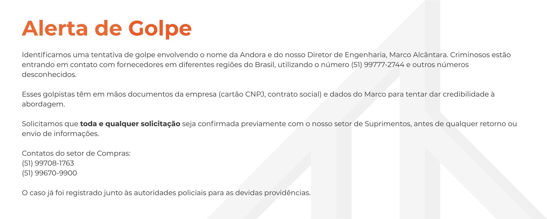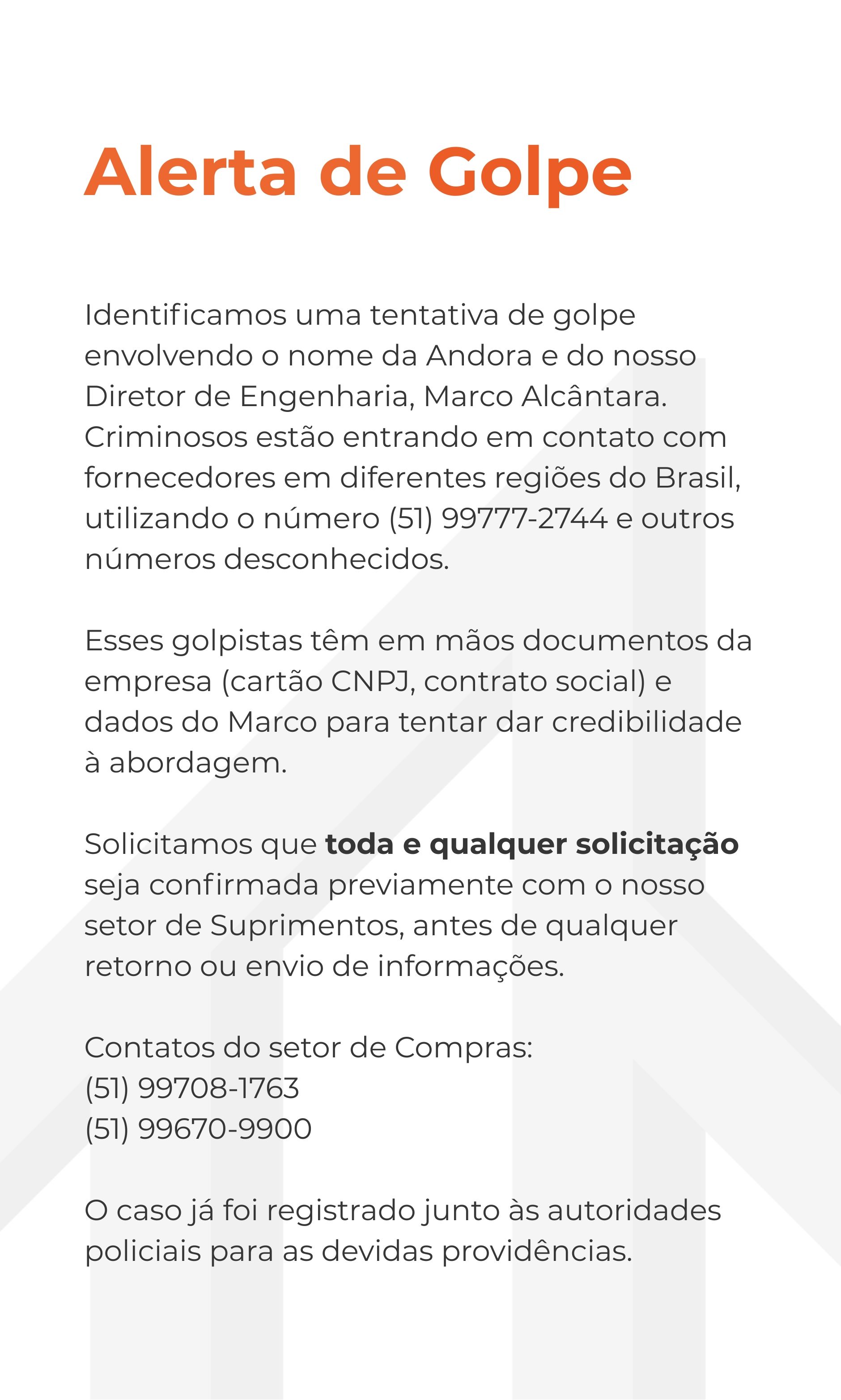 Encontrei na Andora Construções uma equipe competente e comprometida com os objetivos da nossa parceria. Ela está atendendo de maneira plenamente exitosa as nossas demandas na área de construção civil.